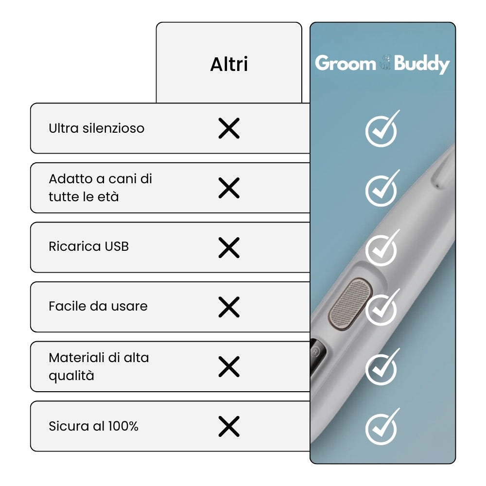 Scegli Groom Buddy per una toelettatura che combina comfort e sicurezza, garantendo il benessere del tuo fedele compagno.